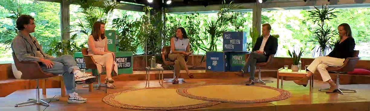 Hoe doe je goed met geld? Met deze vraag opende gespreksleider Talitha Muusse de discussie tijdens Money Matters. Ze introduceerde vervolgens Hanna Riemersma (Amnesty International), Werner Schouten (Jonge Klimaatbeweging), Thijs Verheul (voorheen United Wardrobe, nu investeerder in tech-startups) en Krista Nauta, de jongste bestuurder bij ABP. Wat volgde was een soms pittige discussie over keuzes en dilemma’s en de langetermijnvisie van ABP. (Terugkijken?)